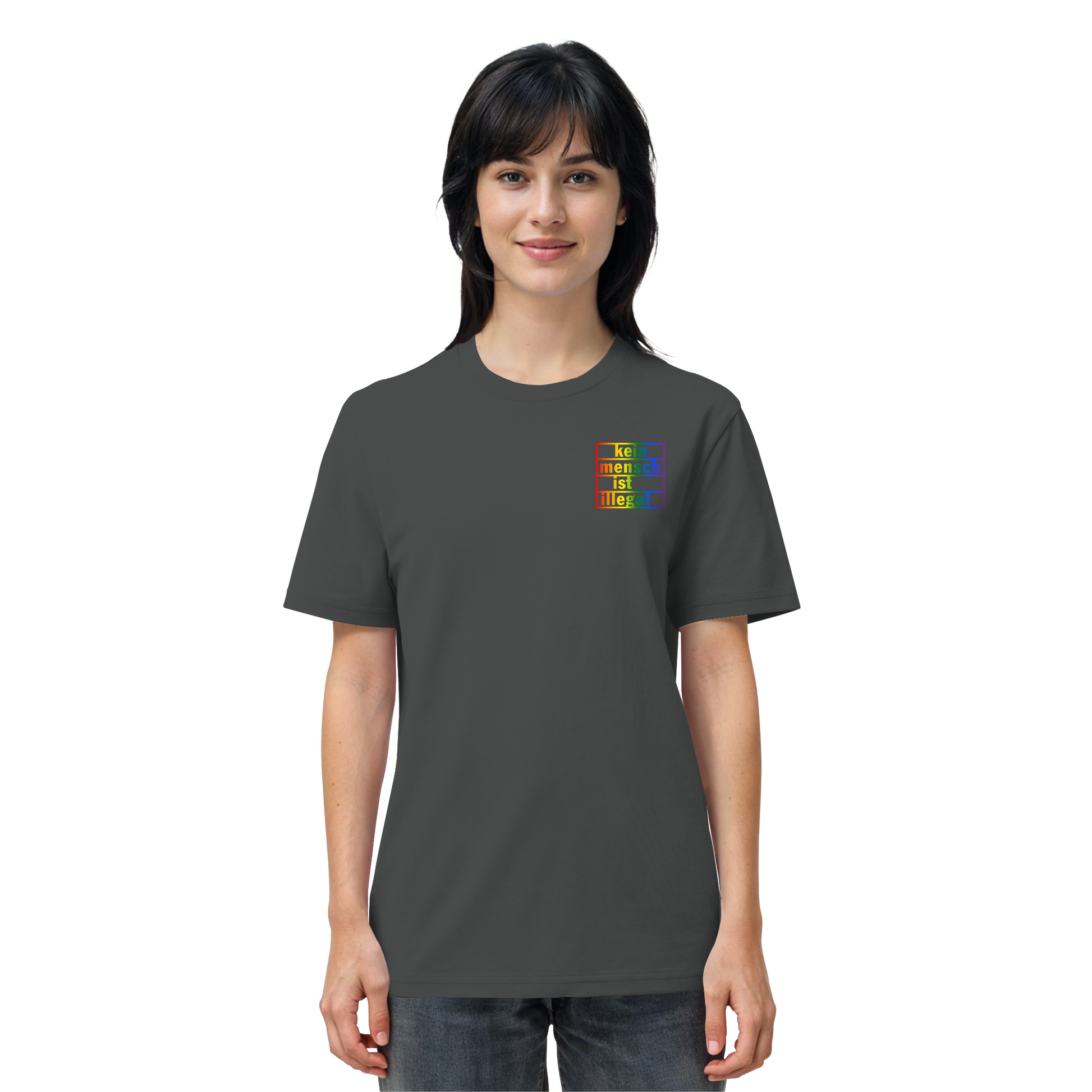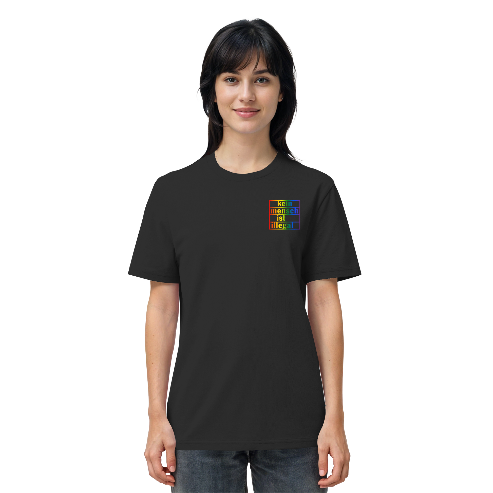 Kein Mensch ist illegal (Regenbogen; kleiner Druck) - T-Shirt