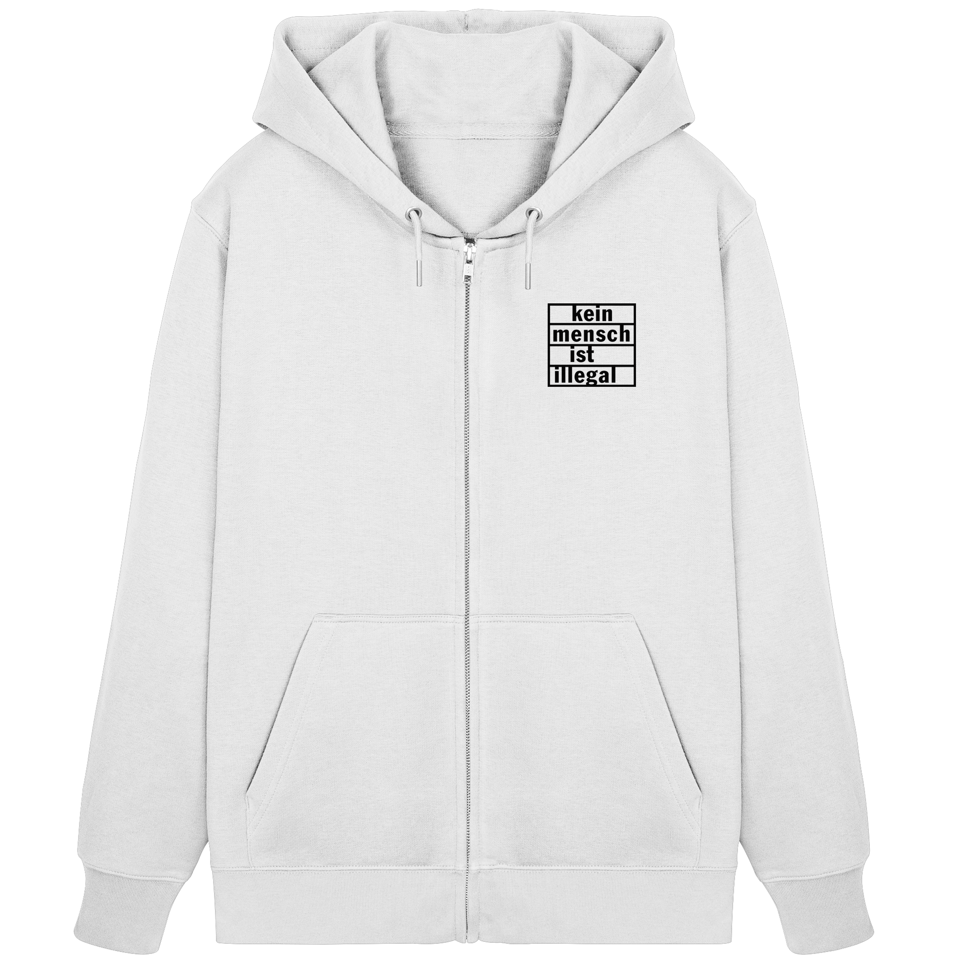 Kein Mensch ist illegal (Schwarz; kleiner Druck) - Hoodie mit Zipper