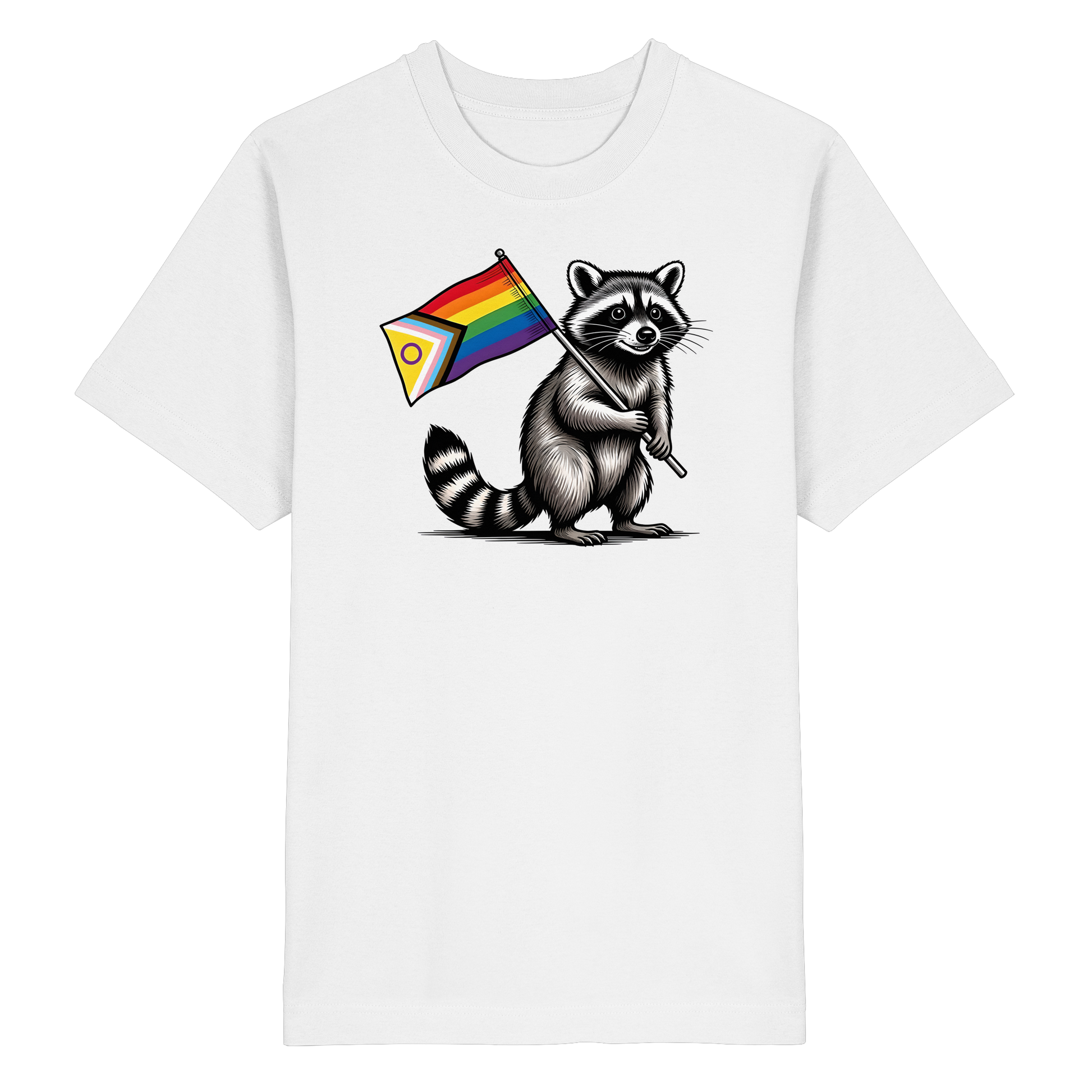 Ein freundlicher Waschbär mit der Intersex-inklusive Pride-Flagge.